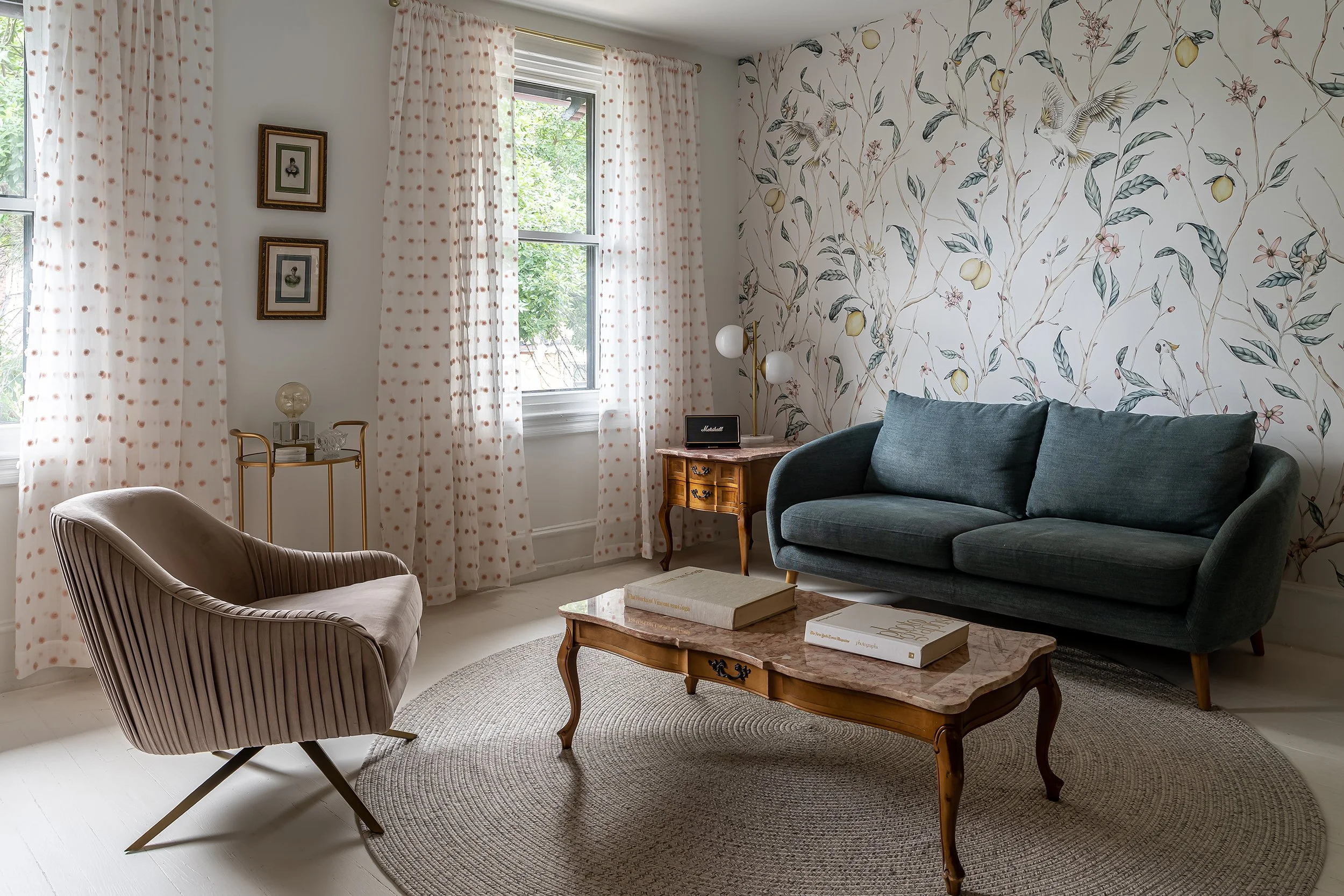 A soothing white palette sets the tone at Cedar Avenue, where vintage finds are reimagined with a soft, modern touch. Gilded accents, playful silhouettes, and whispery patterns bring quiet joy to each room. It’s a serene little haven—refined but unpretentious, and full of pieces lovingly restored for a new chapter.
