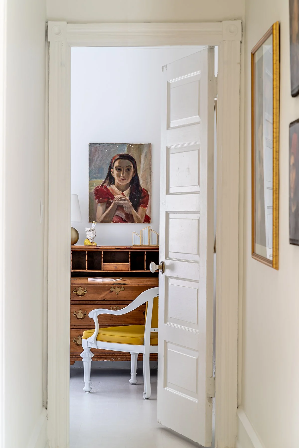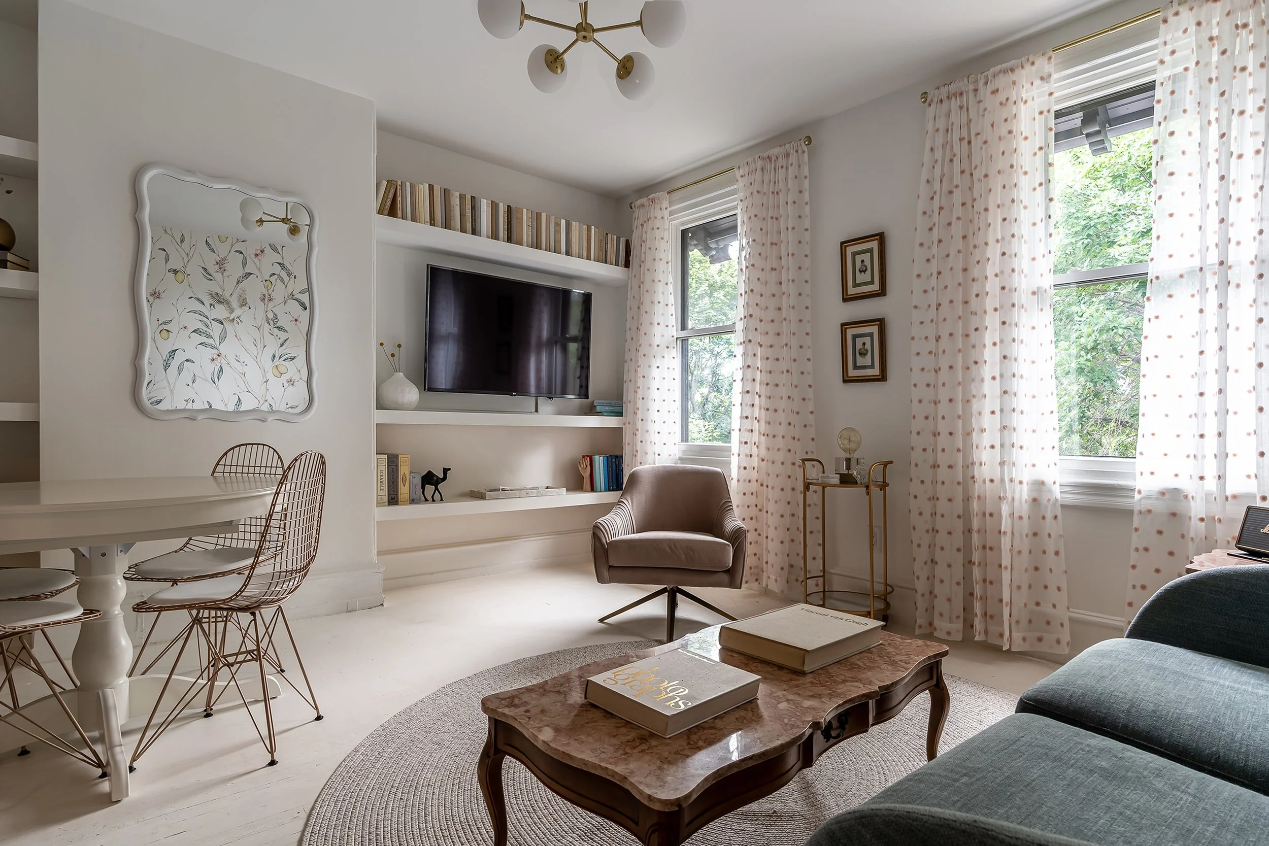 A serene Philadelphia home renovated with a soft white palette, gilded accents, and playful vintage pieces—designed by Studio MaRō (Studio Maro).